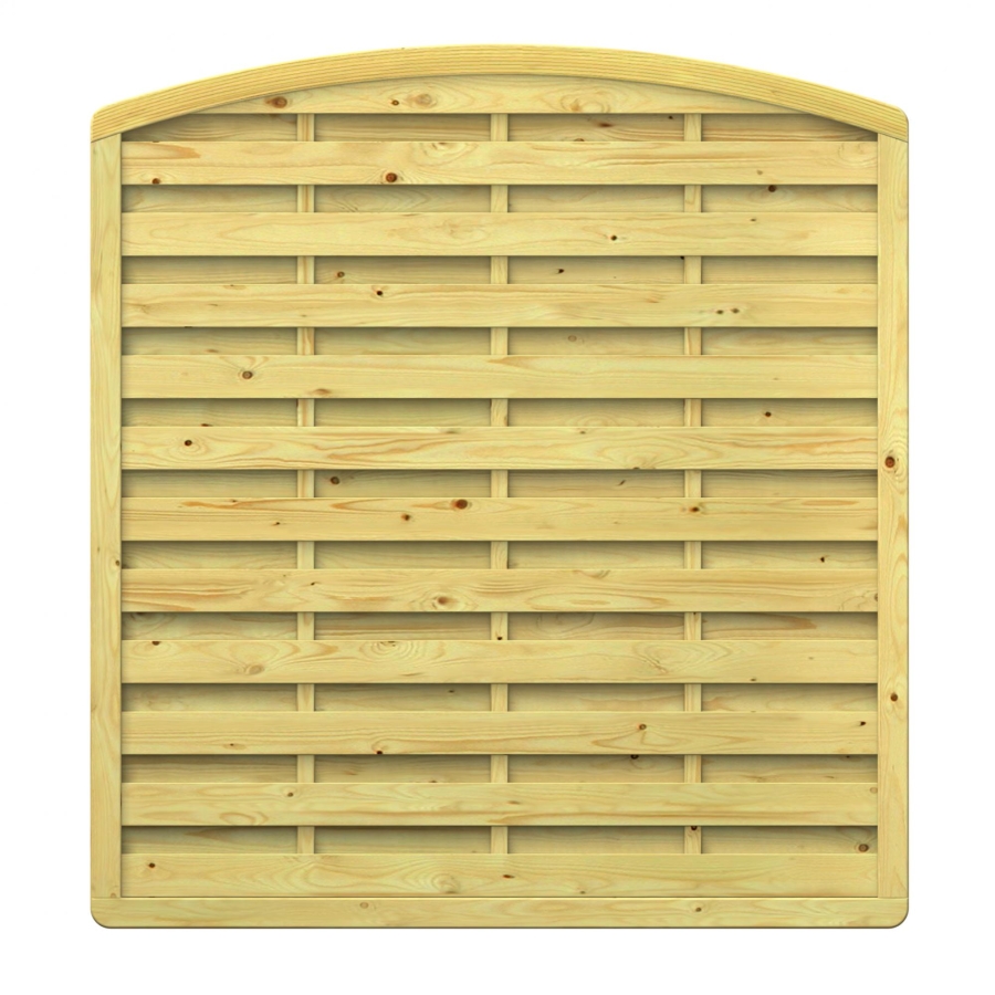 Stil und Funktion gehen bei diesem Zaun Hand in Hand. Die Rundbögen sind in mehreren Schichten wetterfest und stabil verleimt, um Langlebigkeit und Stabilität zu gewährleisten. Die Anordnung der Lamellen ist waagerecht, was dem Zaun ein einzigartiges und ansprechendes Aussehen verleiht. Darüber hinaus gibt die gehobelte Profile dem Zaun eine zusätzliche Tiefe.