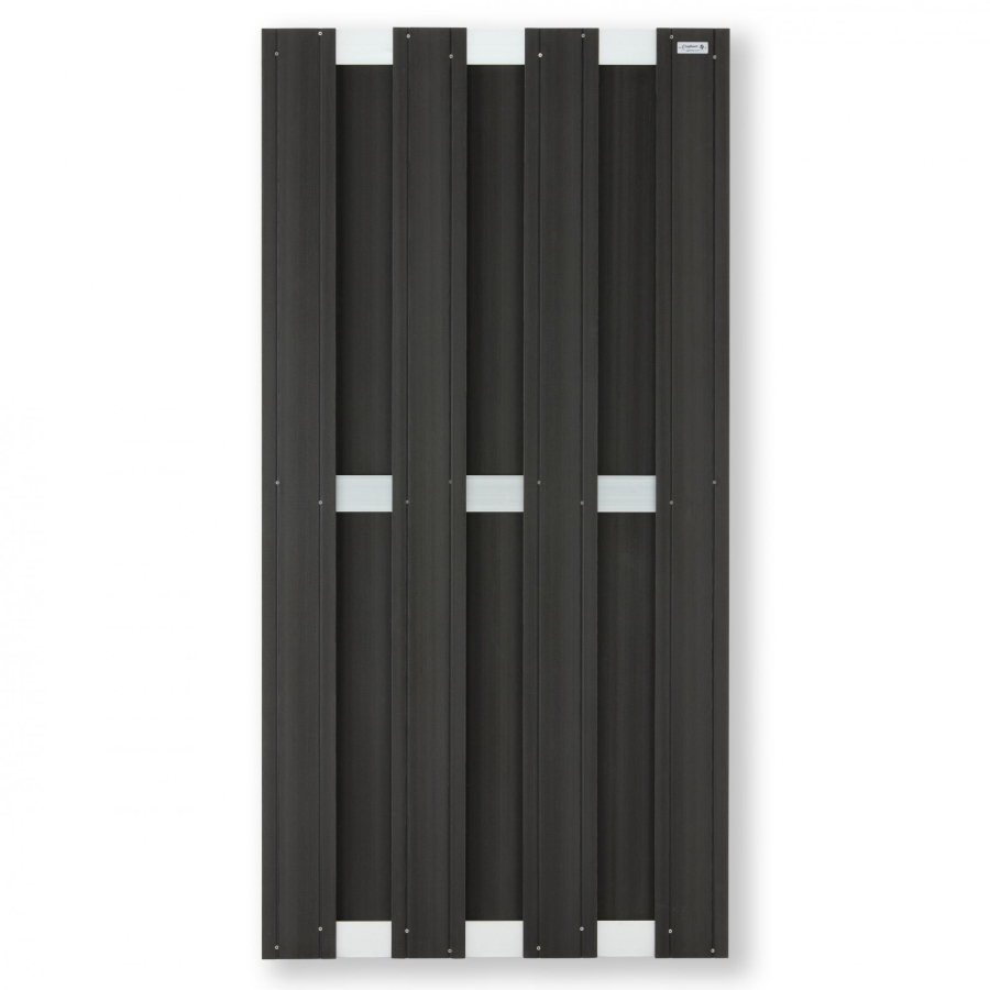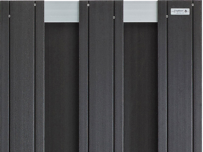 Die Elephant Design Sichtschutzblende zeichnet sich durch eine besondere Kombination aus Materialien und modernem Design aus. Der Sichtschutz besteht aus WPC (Holz-Kunststoff-Verbundstoff), was ihn zu etwa 50% aus Holz und 50% aus Kunststoff ausstattet. Es ist in einem tiefen Anthrazit-Ton gehalten und bietet in Verbindung mit waagerechten Zaunriegeln aus Aluminium ein zeitgemäßes Erscheinungsbild. Seine Form bleibt dabei stets gerade, und er weist je 2 V-Nuten auf.