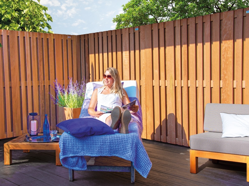 Elephant Hartholzzaun Stripes 180x180cm aus Cedrinho Holz für stilvollen und langlebigen Sichtschutz im Garten