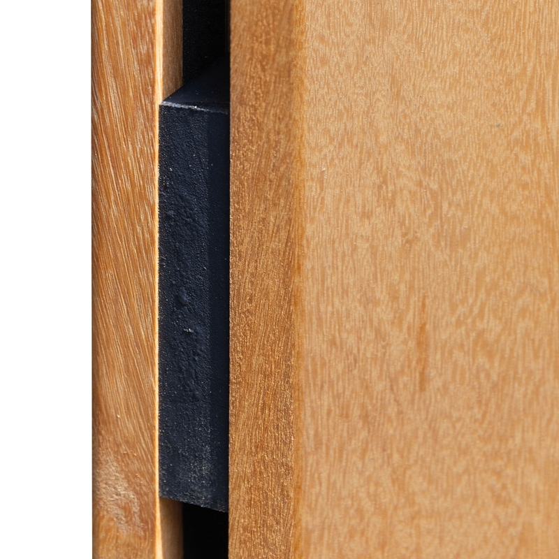 Der Elephant Hartholzzaun Stripes Black 180x180cm besteht aus dem tropischen Hartholz Almendrillo. Dieses Material ist für seine hohe Robustheit und ausgeprägte Witterungsbeständigkeit bekannt. Die Holzoberflächen sind gehobelt und wirken dadurch besonders glatt und wertig. Die natürliche, naturbelassen erscheinende Holzoptik wird durch den schwarzen Träger optisch akzentuiert. Da das Hartholz unbehandelt verbaut wird, kann es mit der Zeit eine edle Patina annehmen oder auf Wunsch mit geeigneten Holzölen farblich angepasst werden. Die Kombination aus Almendrillo und Edelstahlverschraubung sorgt dafür, dass der Zaun als langlebiger Sichtschutzzaun den Anforderungen im Außenbereich problemlos standhält.