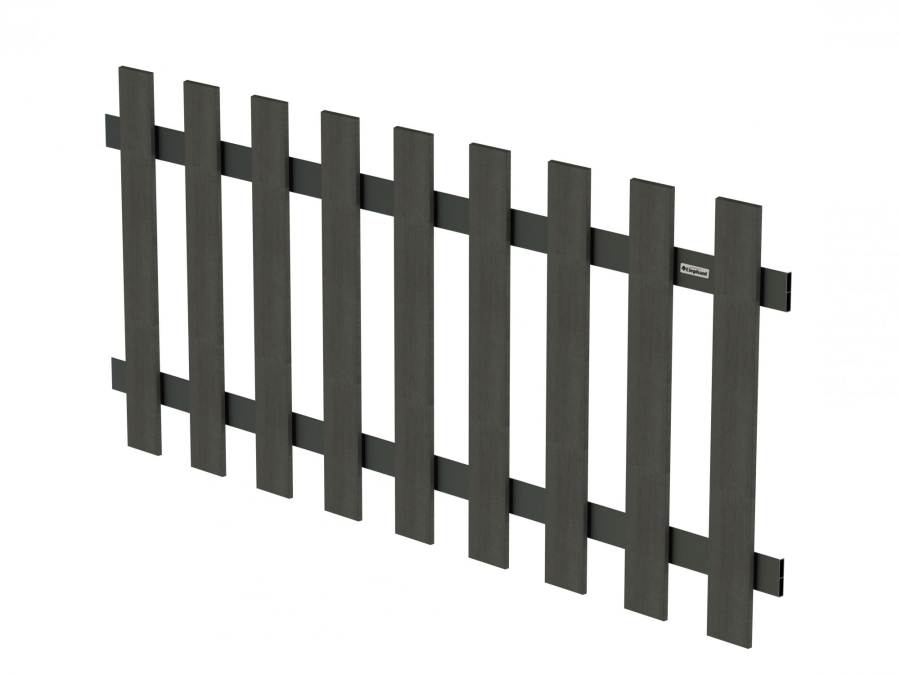 Der Luxe Gartenzaun von Elephant besticht durch sein schlichtes und modernes Design. Als Vorgartenzaun Modell der Elephant Luxe Gartenzaun Produktserie, besteht er zu gleichen Teilen aus Holz und Kunststoff, das so genannte WPC. Er präsentiert sich in der eleganten Farbe Anthrazit und hebt sich durch seine glatten Profile sowie die Querverstrebung aus Aluminium ab.