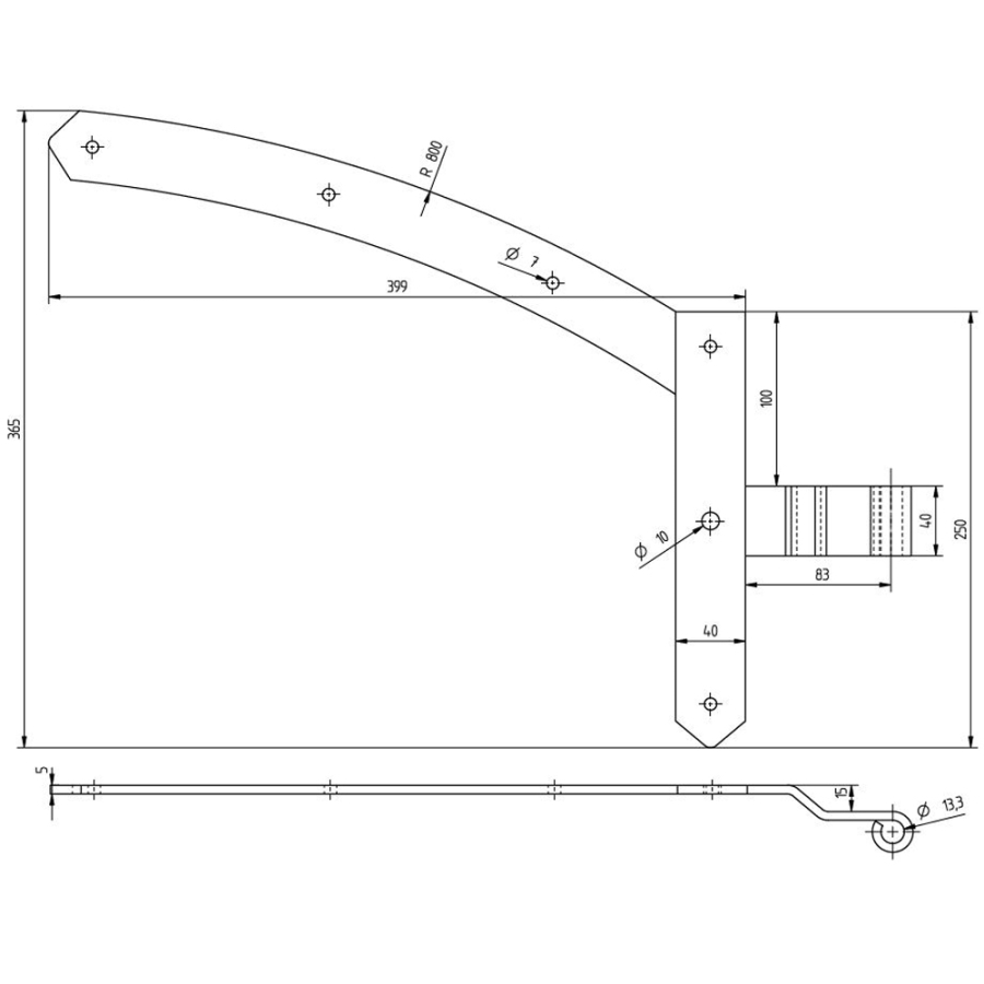 Beschlagssatz für Rundbogen-Einzeltore links Stahl galv. verz. schwarz