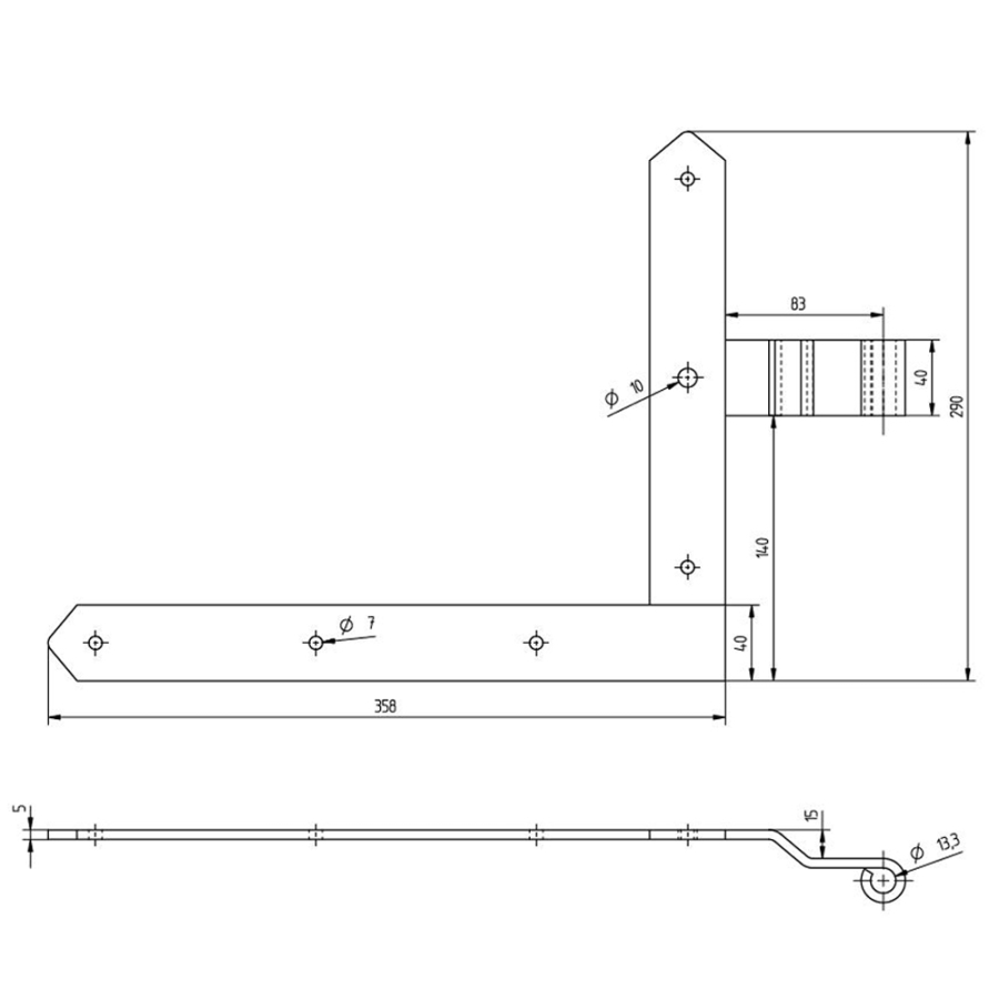 Beschlagssatz für Rundbogen-Einzeltore links Stahl galv. verz. schwarz