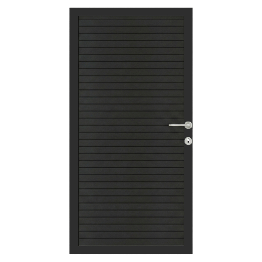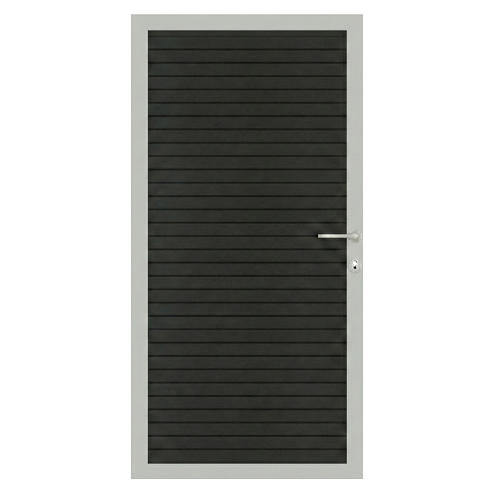Das Material des Osmo Alu Fence Cube Einzeltor Sondermaß besteht vollständig aus hochwertigem Aluminium und erfüllt damit höchste Anforderungen an Stabilität bei gleichzeitig geringem Gewicht. Sowohl der Rahmen als auch die Füllung aus Aluminiumleisten sind pulverbeschichtet und in einem eleganten Anthrazit gehalten. Diese Oberflächenveredelung erhöht die Widerstandsfähigkeit des Metalltors gegenüber Witterungseinflüssen, erleichtert die Reinigung und trägt zu einer einheitlichen Optik mit weiteren Garten- und Zaunkomponenten in dunklen Farben bei.
