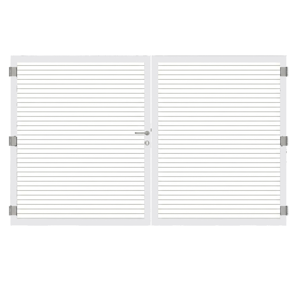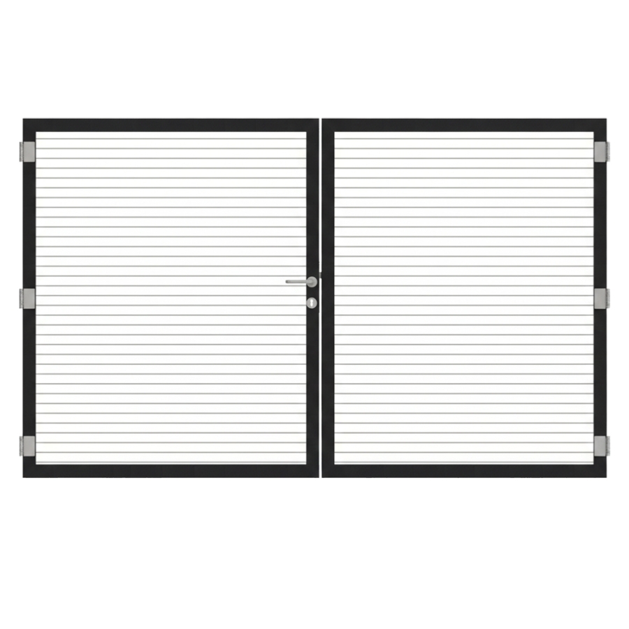 Im Lieferumfang des Osmo Alu Fence Cube Doppeltor Sondermaß sind alle grundlegenden Beschlagteile enthalten, sodass ein montagefertiges Set bereitsteht. Zum Ausstattungsumfang gehören Schließblech, Schloss, Bänder und Griff. Damit sind die Voraussetzungen für eine sichere und komfortable Bedienung des Tors erfüllt.