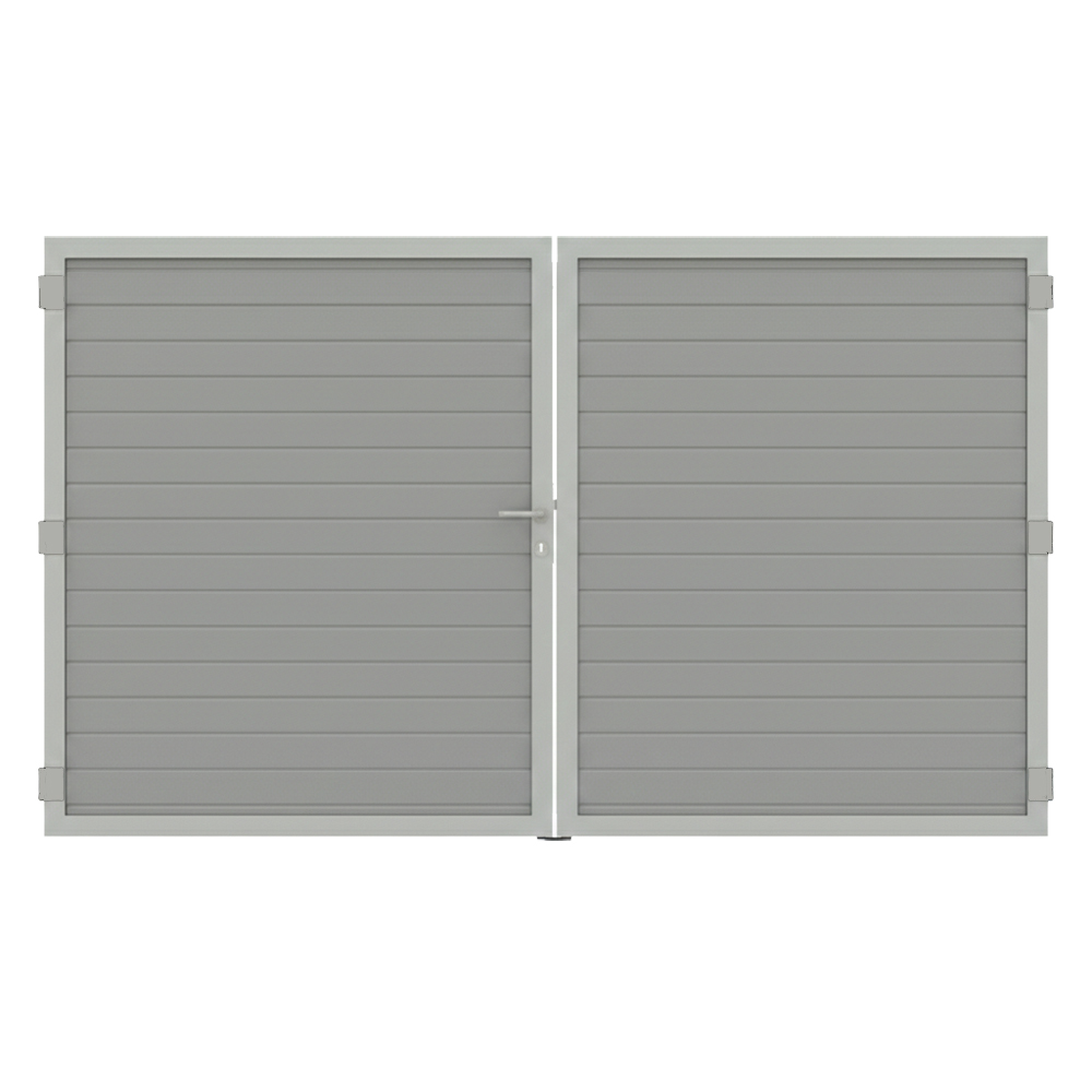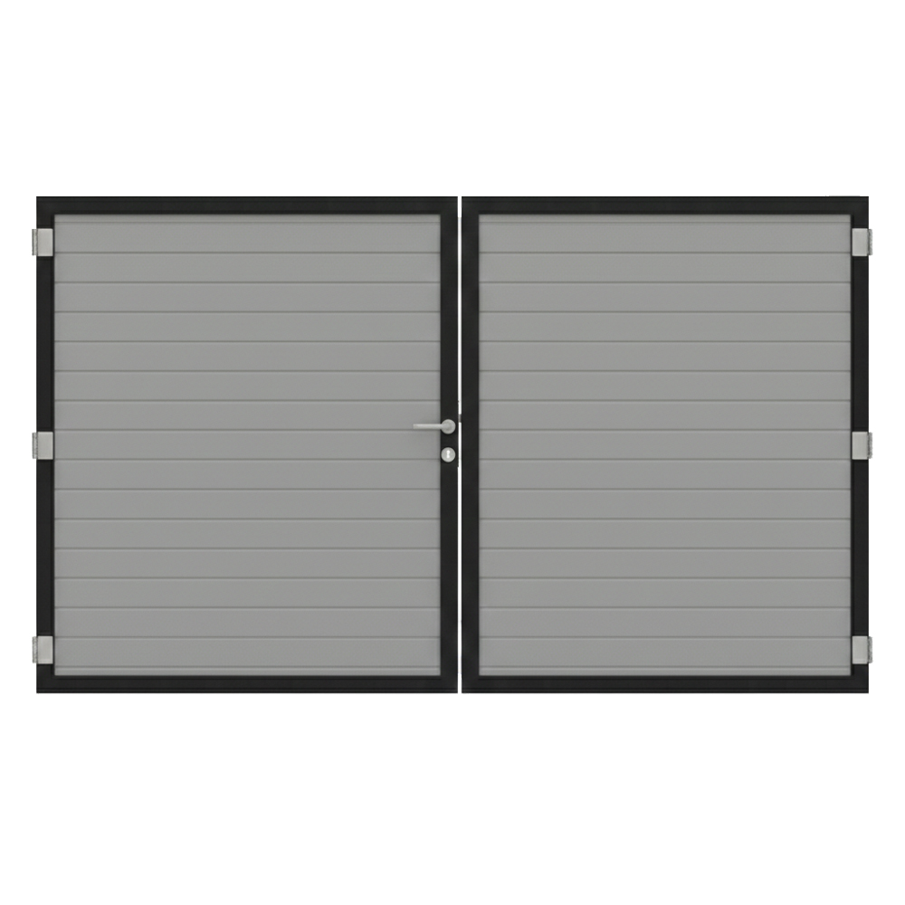 Das Osmo Alu Fence Doppeltor Sondermaß besteht aus Aluminium und ist damit besonders korrosionsarm und formstabil. Der umlaufende Rahmen und die Füllung werden aus hochwertigem Metall gefertigt und sind rundum pulverbeschichtet. Diese Oberflächenbehandlung macht das Tor witterungsbeständig, extrem pflegeleicht und sehr langlebig. Die Pulverbeschichtung in dezenten Grautönen sorgt für eine gleichmäßige Farbgebung und schützt das Aluminium dauerhaft vor Äußeren Einflüssen wie Regen, UV-Strahlung oder Schmutz.