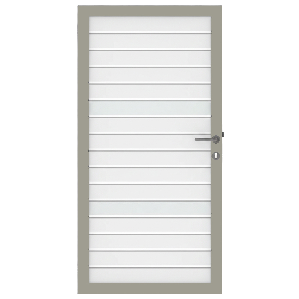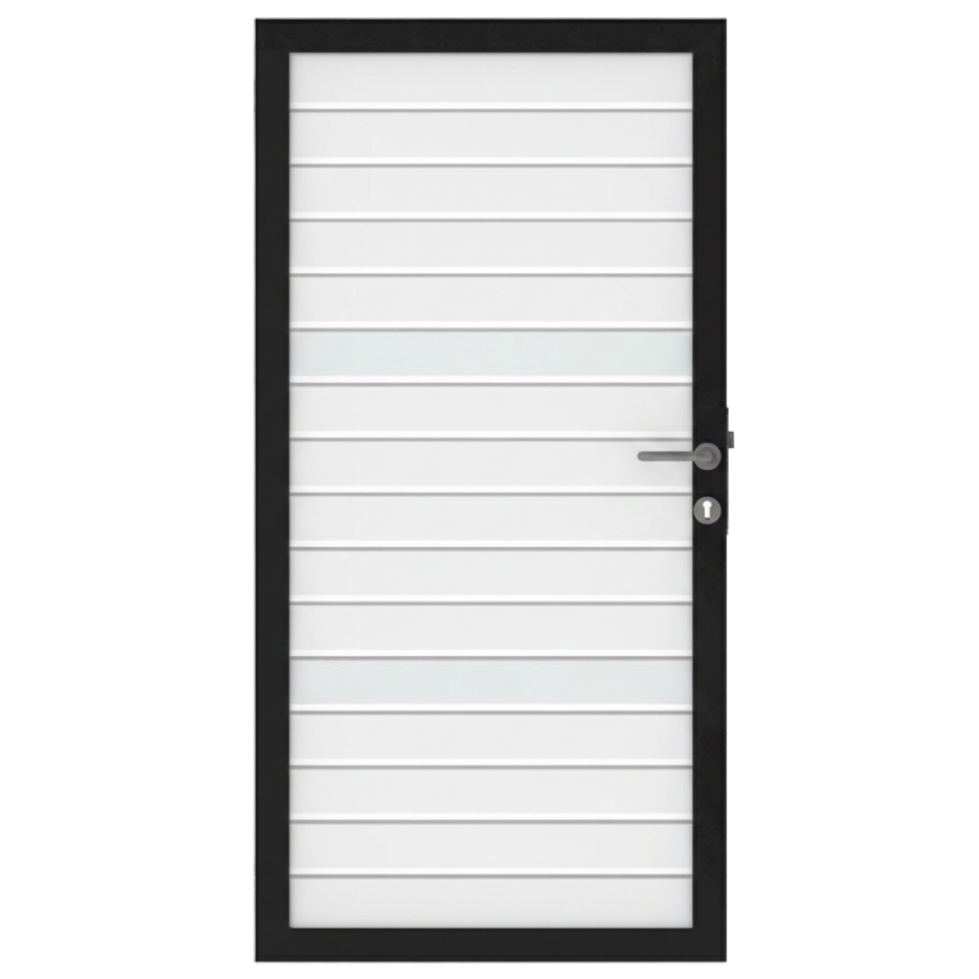 Im Lieferumfang des Osmo Alu Fence Rhombus Typ B Einzeltor Sondermaß sind ein passendes Schließblech, ein Schloss, die notwendigen Bänder sowie ein ergonomischer Griff enthalten.