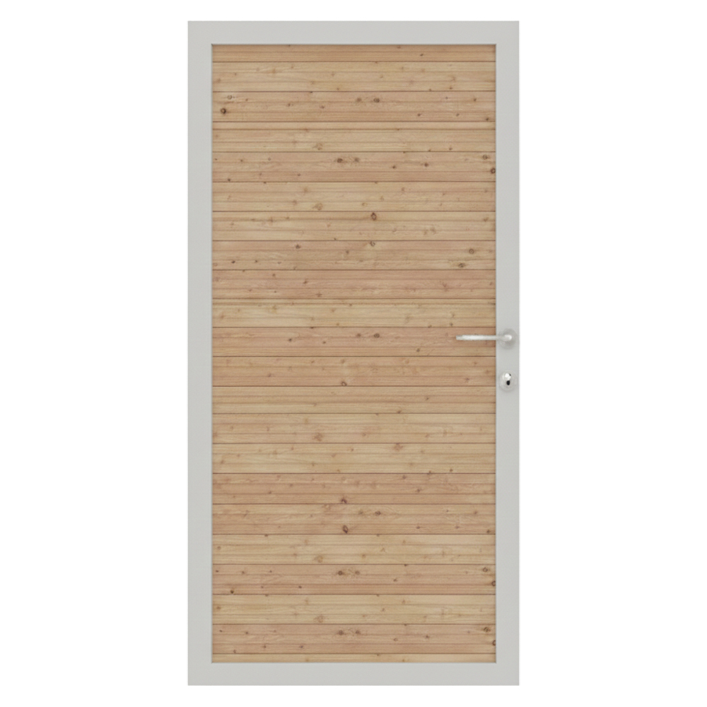 Das Osmo Juel A Lärche Einzeltor Sondermaß besteht aus dem robusten Material Lärche und verbindet natürliche Optik mit hoher Beständigkeit. Die Holzfüllung ist in Form von Lamellen ausgeführt und unterstreicht das harmonische Erscheinungsbild im Garten- und Terrassenbereich. Der tragende Rahmen aus Aluminium sorgt für zusätzliche Stabilität und reduziert gleichzeitig den Pflegeaufwand.