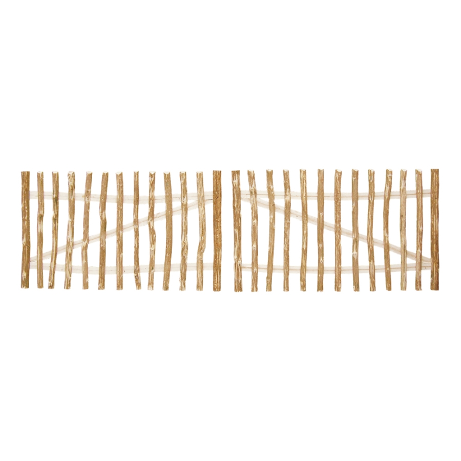 Das Rustik-Doppeltor Haselnuss hat eine Breite von ca. 300 cm und eine Höhe von ca. 90 cm. Der Durchmesser des Tores variiert zwischen ca. 2-4 cm, was ihm eine robuste und dennoch elegante Erscheinung verleiht. Der Lattenabstand beträgt ca. 7-8 cm, was eine perfekte Balance zwischen Ästhetik und Funktionalität bietet.