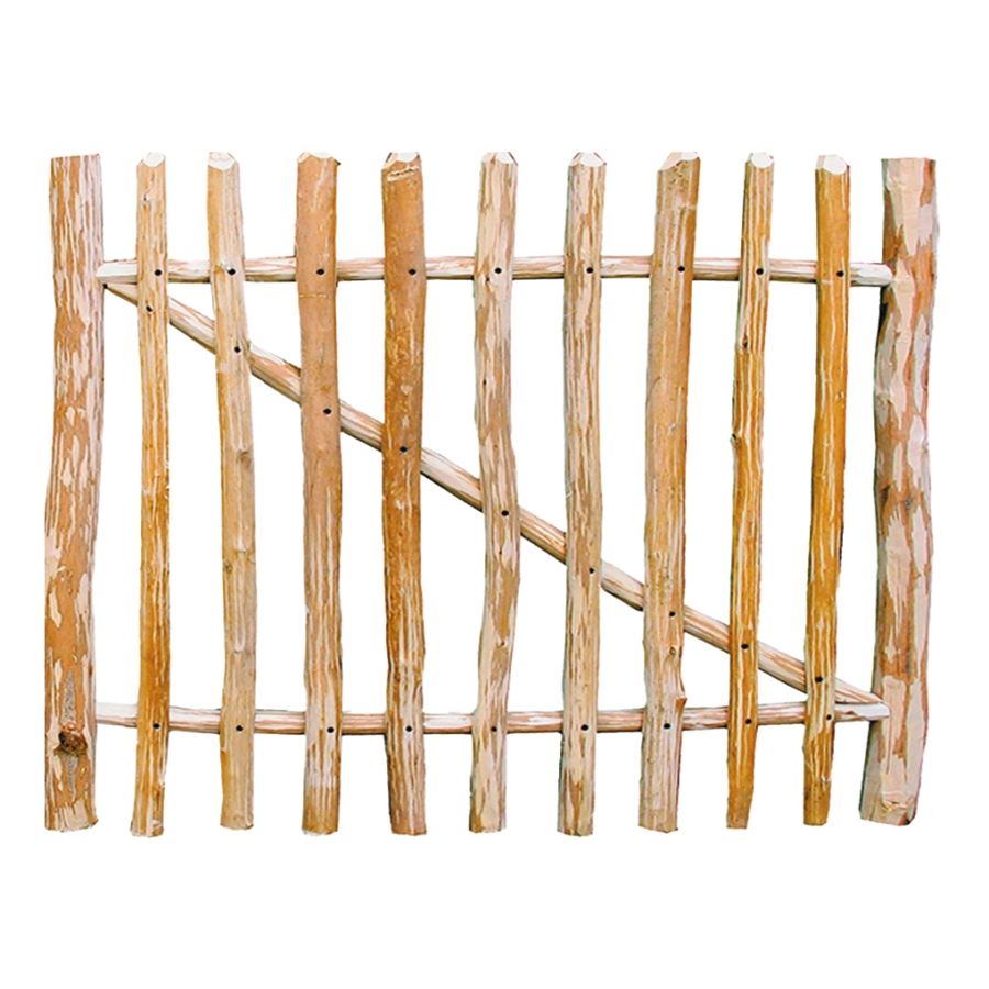 Mit einer Breite von etwa 100 cm und einer Höhe von ca. 120 cm ist das Rustik-Tor optimal dimensioniert für eine Vielzahl von Gartenzwecken. Der Durchmesser der Latten variiert zwischen ca. 2-4 cm, was dem Tor zusätzliche Stabilität und eine ansprechende visuelle Struktur verleiht.