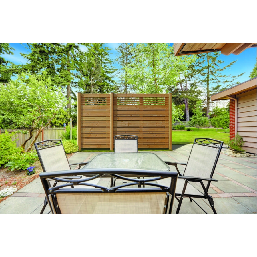 Sämtliche Bauteile des Sichtschutzzauns Calabria sind sorgfältig gehobelt verarbeitet. Dies gilt sowohl für den Rahmen als auch für die Profilbretter und die Gitterprofile. Die Füllung ist edelstahlverstiftet, wodurch eine dauerhafte, korrosionsbeständige Verbindung entsteht. Die Bauweise als Fertigzaun ermöglicht eine schnelle und effiziente Montage, da das Hauptelement bereits vormontiert geliefert wird. Die natürliche Profiloptik der Leisten sorgt für ein gleichmäßiges Erscheinungsbild, während die naturbelassene Oberfläche Ihnen Freiraum für eine individuelle Nachbehandlung mit geeigneten Lasuren oder Ölen lässt.