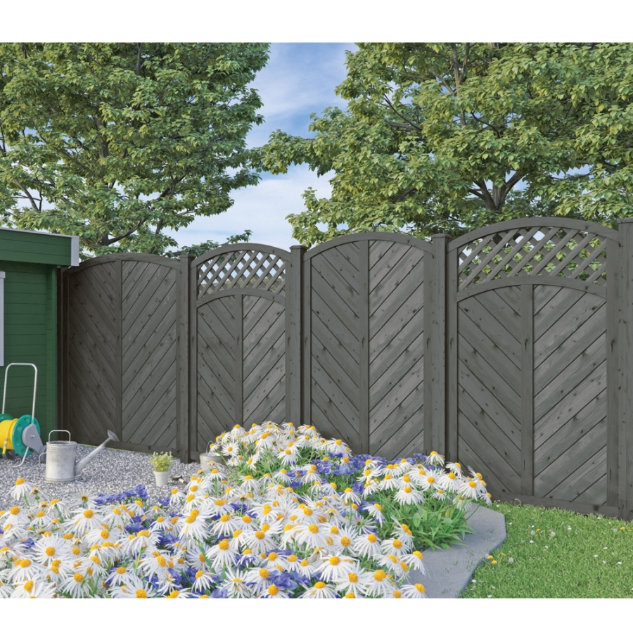 Sichtschutzzaun Lyon Fichte farbbehandelt Granit 120-180-165cm für stilvollen und langlebigen Sichtschutz im Garten