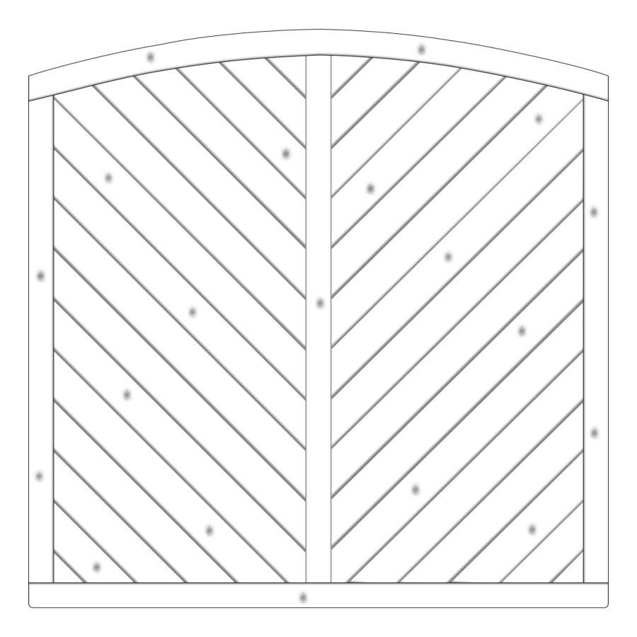 Die Bauform als Sichtschutzzaun kombiniert eine dekorative Hochbogen-Silhouette mit einer ansprechenden Anordnung der Füllung in fischgrät-Optik. Die Profile sind gehobelt und bieten eine glatte, angenehm anzufassende Oberfläche. Durch die Nut-Feder-Bretter entsteht eine geschlossene, stabile Fläche mit wirkungsvollem Sichtschutz. Der verzapfte, edelstahl-verschraubte Rahmen sorgt für formstabile Verbindungen, während die Edelstahl-Schrauben die Konstruktion dauerhaft sichern. So entsteht ein langlebiger Sichtschutz, der funktionale Stabilität mit einer hochwertigen Optik verbindet.