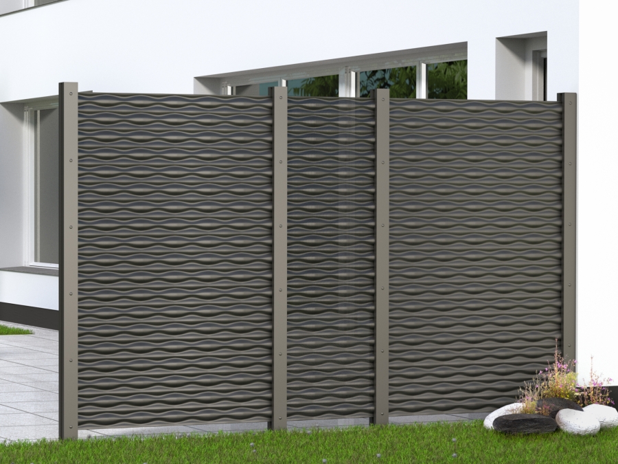 Die System Flow Serie ist speziell für den Einsatz als Wind- und Sichtschutz konzipiert und in verschiedenen Materialien erhältlich. Dabei stellt das hier beschriebene Produkt eine ausgezeichnete Wahl dar - komplett aus Metall und in anthrazit gehalten.