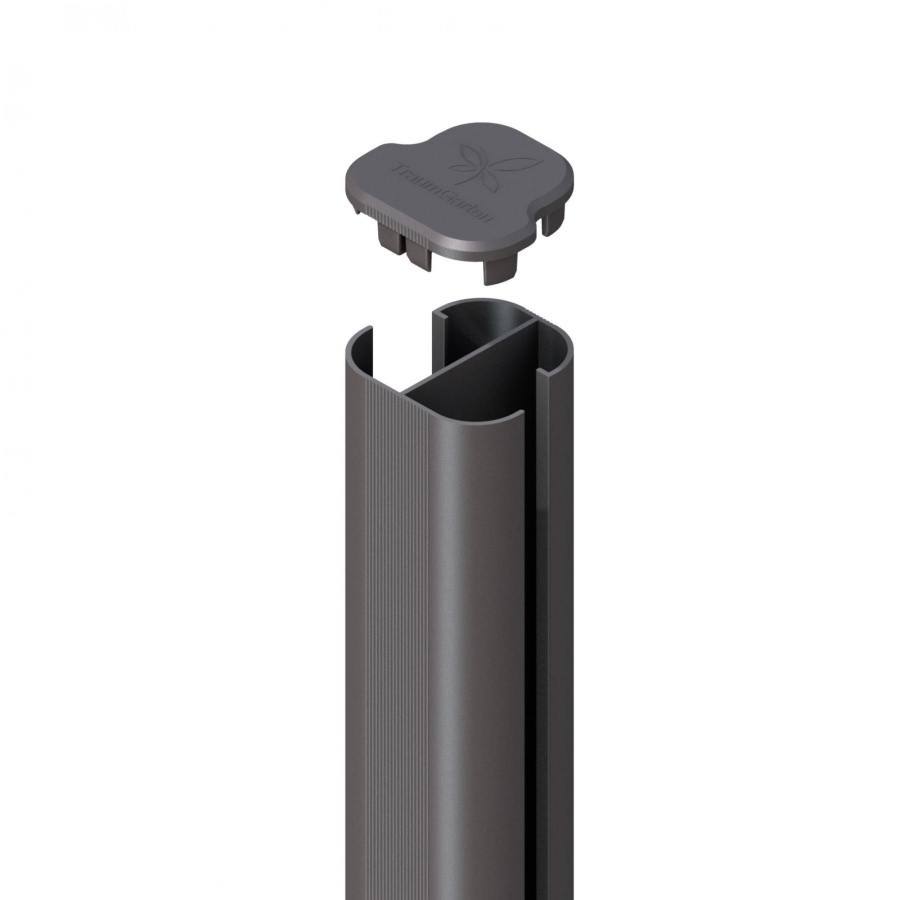 Der System Eckpfosten anthrazit ca. 193 cm zum Aufschrauben 2107 gehört zur renommierten Produktserie System WPC, System Alu Classic, System WPC von Traumgarten. Hergestellt aus pulverbeschichtetem Aluminium strahlt er in der Farbe anthrazit und steht sowohl für optische Eleganz als auch für die Robustheit von Metall. Für die hohen Qualitätsstandards der Marke Traumgarten spricht die Tatsache, dass zu den besonderen Eigenschaften des Pfostenprodukts die Inklusion einer Pfostenkappe, eines Ankers zum Aufdübeln und einer Aussparungsnut für Profilbretter zählen.