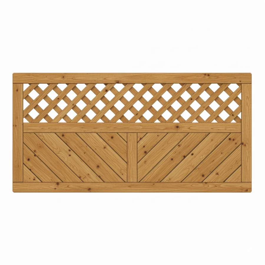 Die Füllung des Vorgartenzaun Lugano Lärche-Douglasie 180x90cm mit Rankgitter besteht aus passgenauen Nut-Feder-Brettern, die eine stabile und nahezu geschlossene Fläche bilden. Der dekorative Rankgitterausschnitt im oberen Bereich ist mit diagonal angeordneten Gitterprofilen ausgeführt. Die Maschenweite von 60 x 60 mm ist optimal für Kletterpflanzen wie Clematis oder Efeu und unterstützt so eine natürliche Begrünung. Dadurch eignet sich der Vorgartenzaun Lugano Lärche-Douglasie 180x90cm mit Rankgitter sowohl als Sichtschutz als auch als gestalterisches Element im Vorgarten, an Terrassen oder Sitzbereichen.